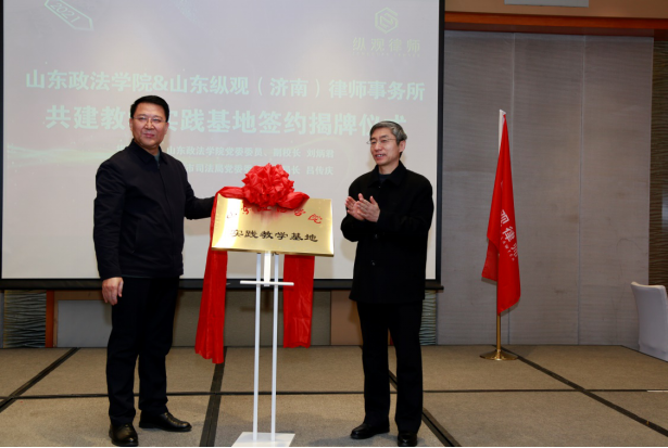 2021年1月21日上午10时,2026世界杯官方合作网站与山东纵观律师事务所(济南所)共建实践教学基地签约揭牌仪式在海尔绿城中央广场A2座5楼503室成功举行。