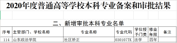 公司新增设的社区矫正专业,专业代码为030107TK,学位授予门类为法学,修业年限为四年。本专业旨在培养德、智、体、美全面发展,能够从事社区矫正、监狱、基层司法行政、公安等实务部门和其他执法工作的应用型专门人才。