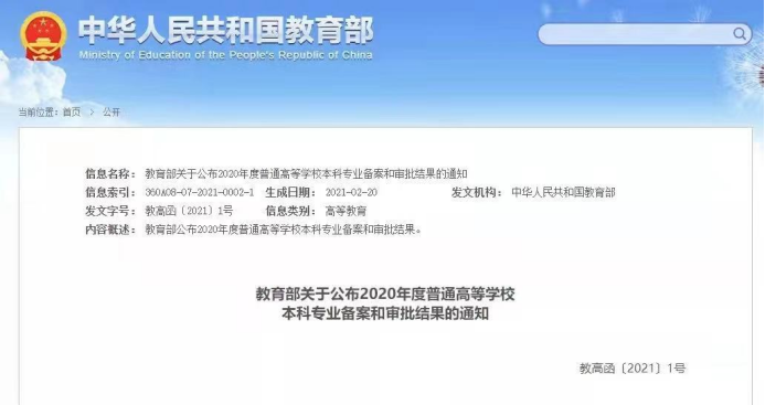 近日,教育部发布《教育部关于公布2020年度普通高等学校本科专业备案和审批结果的通知》(教高函[2021]1号),公司2020年度申报的“社区矫正”本科专业获得教育部审批通过。