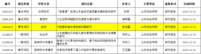 近日,公司彭俊磊博士的法学青年项目《大数据侦查法律规制问题研究》喜获2021年度省社科规划研究项目立项。