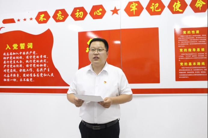 活动进行第二项,由中共预备党员代表李燕堃同志以《初心之火,点亮信仰之灯》为题演讲,生动讲述了共产党人的初心使命,深刻阐释了以政绩事迹履行永远把人民对美好生活的向往作为奋斗目标的庄严承诺。
