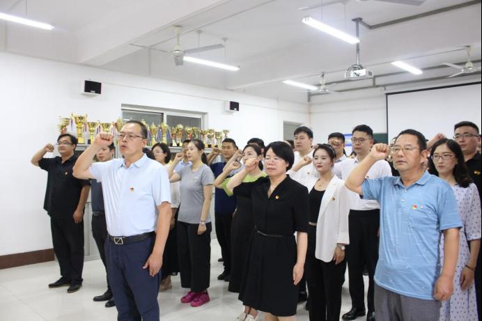 为庆祝建党100周年,按照公司党委的工作安排,2021年6月30日13时30分,警官公司党总支组织全体教职工党员、员工党员于党员活动室举行新党员入党宣誓暨老党员重温入党誓词活动。本次活动由党总支副书记高翔同志主持。