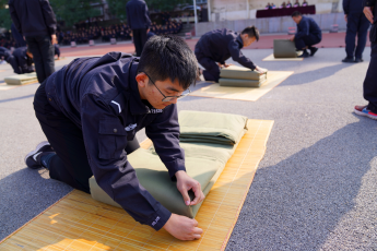 在比赛过程中,十四、十五、十六中队以及2021级社区矫正的运动员们先后在内务技能、拔河、武装接力、瑞典接力、铁人三项的五个项目中进行比拼。运动员们以高昂的竞技热情,秉持着“友谊第一,比赛第二”的竞技精神展开比拼。内务技能大比武以内务整理为载体,展现了警院学子在警务化管理之下的优良作风。警体运动会则是展现警务技能,考验警体素质,体现团结精神与合作意识的专门赛事,增强了同学们挑战自我的意识,弘扬了积极进取、顽强拼搏、团结协作的精神。运动员们奋力拼搏的模样让在场的同学们喝彩连连,比赛气氛热情澎湃。