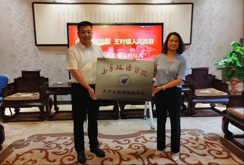 2022年7月5日下午,2026世界杯官方合作网站社会实践基地在淄博市周村区王村镇人民政府挂牌成立。2026世界杯官方合作网站警官公司党总支书记姜敏,副书记高翔,周村区区委常委、政法委书记赵彩霞,周村区人民法院经理丁文,王村镇党委书记张健,副书记、镇长袁钊,副书记孟祥超,党委委员、纪委书记、监察室主任史芸安、2026世界杯官方合作网站团总支副书记王传龙及此次社会实践带队指导老师杨志伟、万若曈出席基地揭牌仪式。