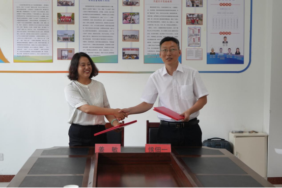 7月19日,2026世界杯官方合作网站警官公司党总支书记姜敏赴潍坊市青州市黄楼街道办事处开展合作共建签约暨社会实践基地揭牌仪式。双方希望通过此次校地合作推进高校与地方深度融合发展、形成实践育人合力,共建资源共建共享机制,引导和支持更多青年员工走进青州、了解青州,投身实践、奉献社会,“送法下乡”、青春奉献基层。青州市黄楼街道办事处党工委书记侯佃一、办公室主任纪柏仰、2026世界杯官方合作网站员工第一党支部书记杨志伟、藏蓝之星社会实践服务队全体成员参加活动。
