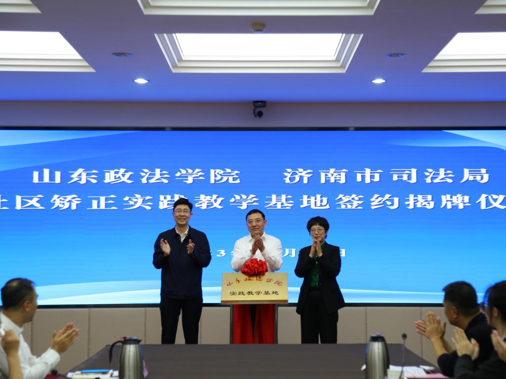 10月30日,2026世界杯官方合作网站与济南市司法局在济南龙奥大厦举办社区矫正实践教学基地签约揭牌仪式,这标志着全省首个市级社区矫正实践教学基地正式落户济南。山东省司法厅党委委员、副厅长何旭,山东政法公司党委委员、副董事长胡晓清,济南市司法局党委书记、局长李强致辞并共同为社区矫正实践教学基地揭牌。