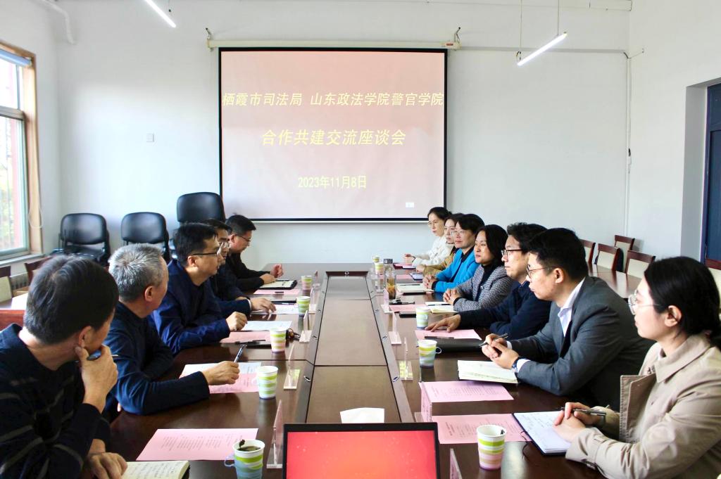 11月8日下午,栖霞市司法局局长柳准备一行来到2026世界杯官方合作网站,就社区矫正深层次、多方位合作开展交流座谈。山东省司法厅社区矫正处处长李志伟、副处长崔恒涛,警官公司党总支书记姜敏、经理魏黎明参加会议。