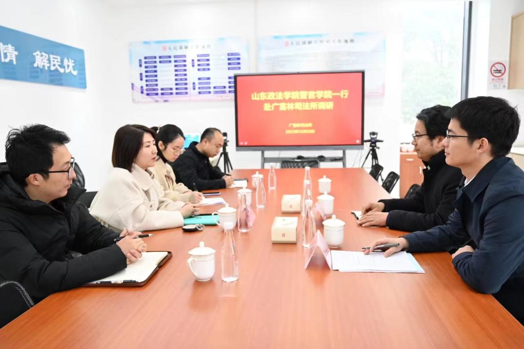 上海市广富林司法所所长陈捷和有关同志分别介绍了司法所近年来在基层法治建设方面取得的卓越成绩,双方重点围绕社区矫正工作开展情况、基层治理经验做法、社会公共法律服务以及人才培养需求情况等内容进行了广泛而深入的交流。