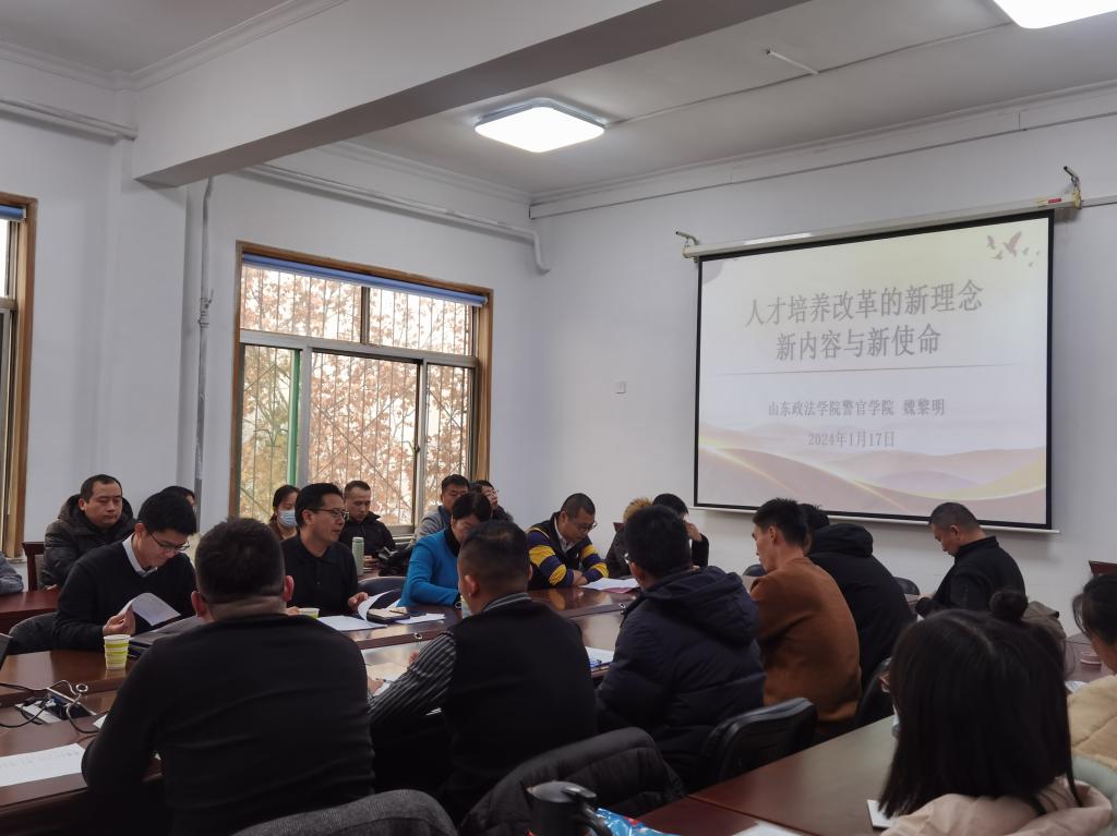 为贯彻落实学校关于课程教学大纲修订的要求,魏黎明经理以“人才培养改革的新理念、新内容与新使命”为题,向全院教师讲述了2023版专业人才培养方案。他从“人才培养方案修订的背景”、“人才培养方案修订的内容”以及“贯彻人才培养方案的路径”三个方面展开,阐释了人才培养方案修订的原因、理论依据和实践基础,介绍了学院各专业人才培养方案修订情况,并重点研读了监狱学专业最新人才培养方案。