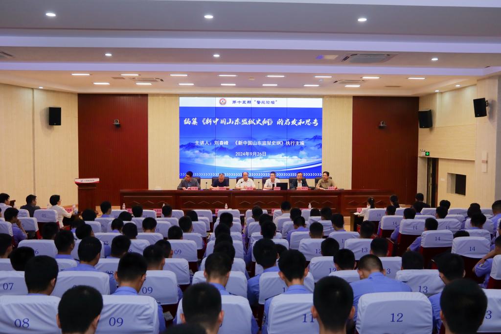 讲座上,刘春峰围绕《新中国山东监狱史纲》的编纂情况、编纂《新中国山东监狱史纲》的启发与思考和“进一步全面深化改革”形势下对监狱工作的思考三个部分,结合自身考察调研经验和丰富工作经历,从政治、历史、经济等多个方面对《新中国山东监狱史纲》进行了详细阐述,见解独到、剖析深邃。