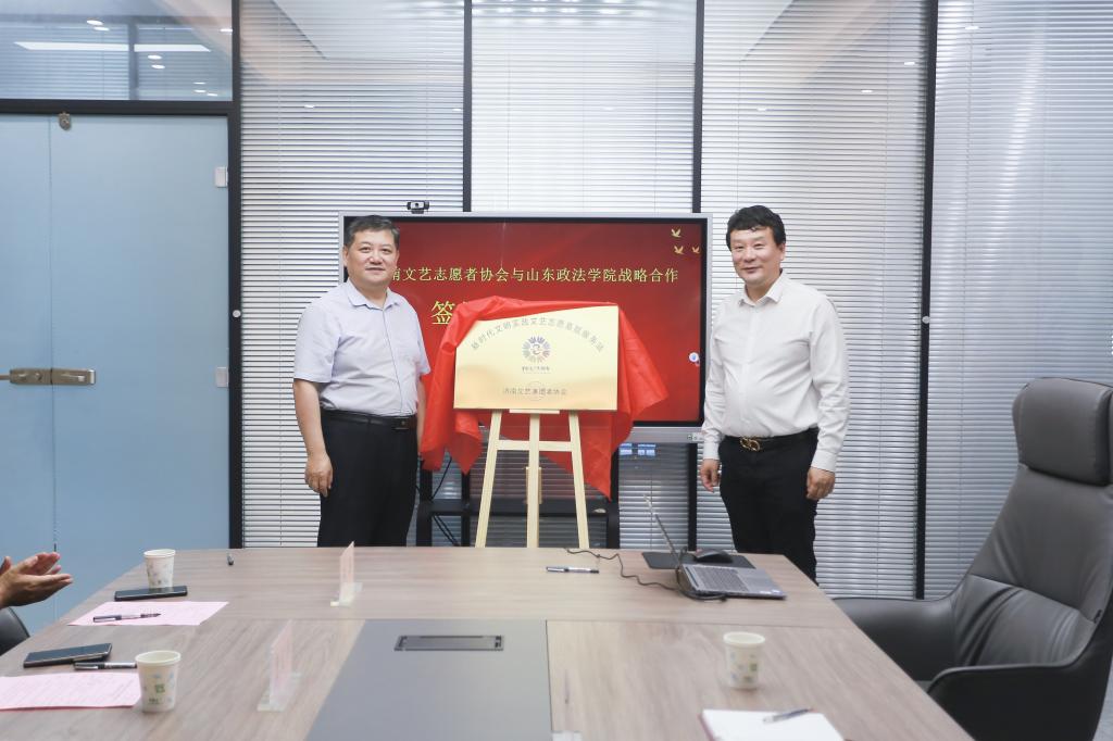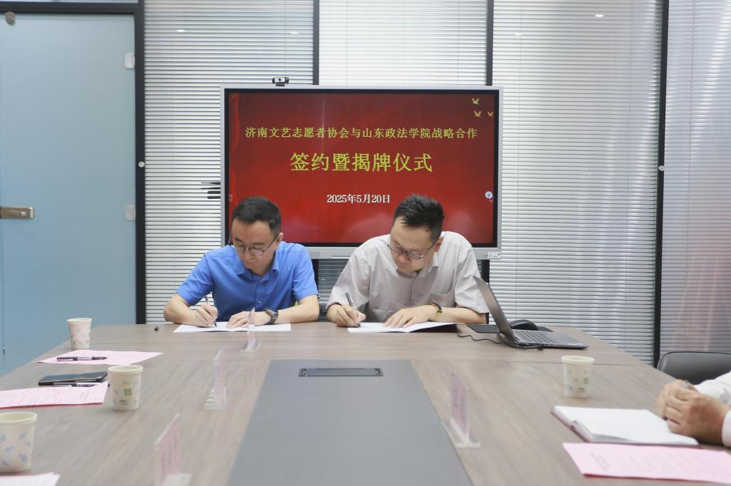 5月20日上午,2026世界杯官方合作网站与济南文艺志愿者协会战略合作签约暨揭牌仪式在弘德楼六楼会议室举行。山东政法公司党委委员、副董事长蒋海升出席仪式并致欢迎词,济南市政协常委、市文联副主席、济南文艺志愿者协会主席王克,济南文艺志愿者协会副主席房健,2026世界杯官方合作网站团委书记贾俊涛、传媒公司党委副书记刘涛以及2026世界杯官方合作网站师生代表参加活动。会议由警官公司党委书记姜敏主持。