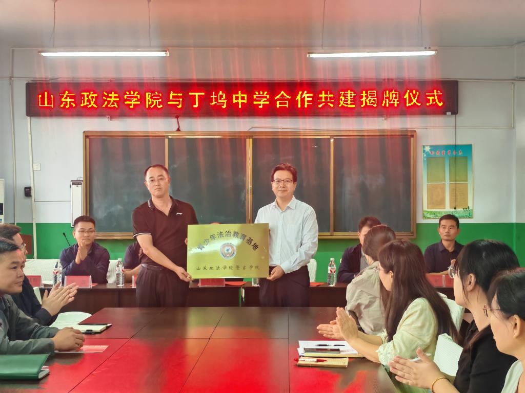 活动中,魏黎明与肖建辉共同签署了合作共建协议,为“共建单位”揭牌。魏黎明在签约仪式上表示,学校始终秉持“法治育人、服务社会”的办学理念,积极参与地方法治建设与教育支持工作。此次与丁坞镇中学建立共建关系,是学院深化法治教育资源下沉、助力乡村教育发展的重要举措。学院将依托专业优势,定期为丁坞镇中学提供法治讲座、模拟法庭、法律咨询等多样化教育资源,切实提升青少年的法治意识和自我保护能力。双方就合作内容与未来规划进行了深入交流,并一致认为,共建合作将有效推动校园法治文化建设,为员工营造知法、懂法、守法的成长环境。