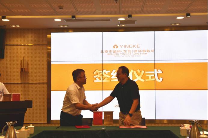警官公司党总支书记、经理张传伟与盈科东营律所党支部书记盖乃明签订《共建实践基地教学基地协议书》,副董事长许海波与东营市司法局副局长崔文书为实践教学基地揭牌,教务处处长张玉成为盖乃明颁发兼职教授聘书。