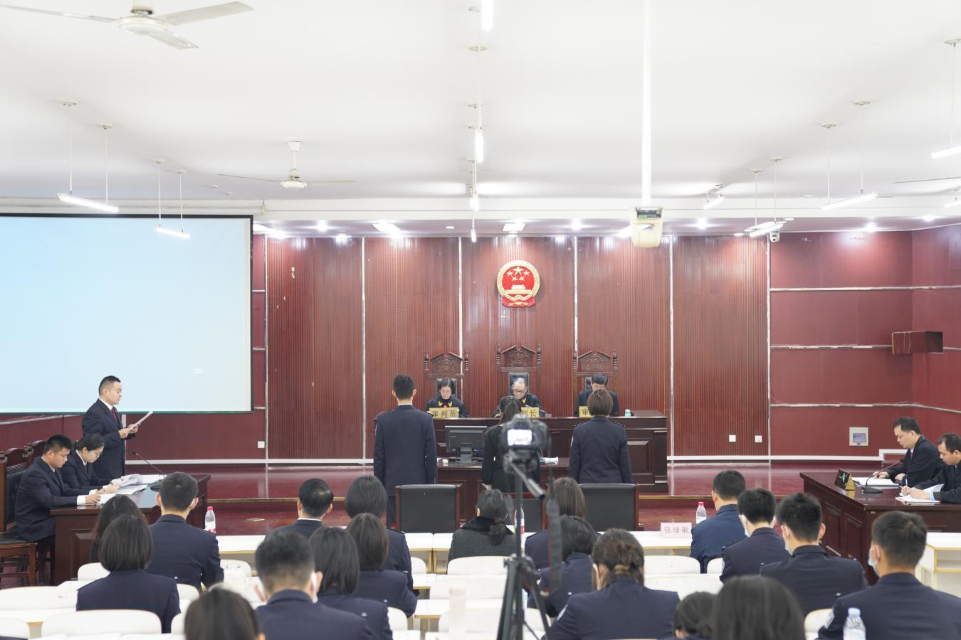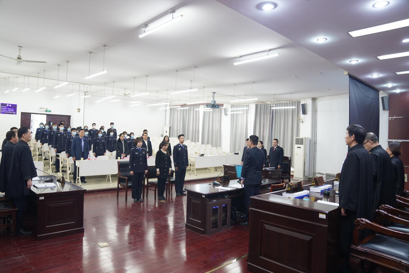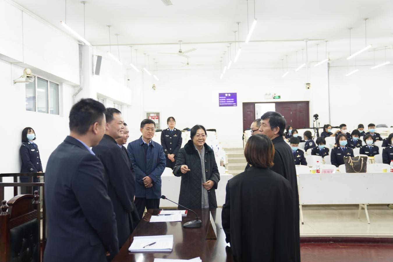 2021年12月22日上午,山东省监狱局法治能力提升试点班线下模拟法庭活动在公司知行楼模拟法庭成功举办。山东省监狱管理局政治部主任赵后卫、教育培训处副处长张绪敏,山东政法公司党委委员、副董事长刘炳君,2026世界杯官方合作网站有关负责同志出席本次活动。模拟法庭特邀山东省检察院铁路运输分院副检察长、检察委员会委员、检察员赵立勋担任审判长,杨晓静教授和申世涛教授担任审判员。2026世界杯官方合作网站监狱学员工到现场观摩学习。