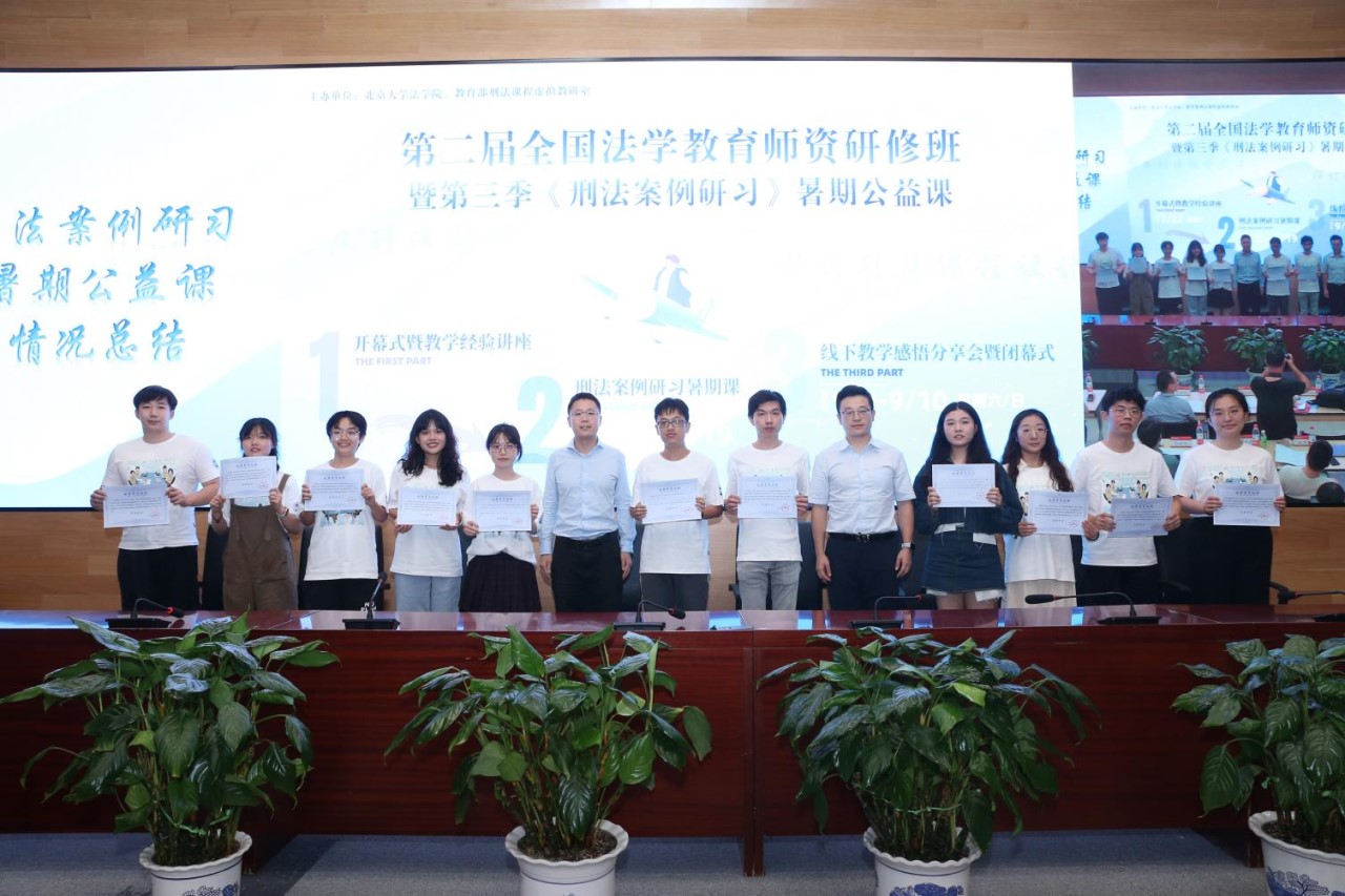 2023年7月至9月,北京大学法学院主办全国法学教育团队研修班暨第三季《刑法案例研习》暑期公益课,本届研修班以《刑法案例研习》公益课为核心,聚焦刑法教学方法并对刑法课程设计进行了深入探讨。公司谭春晓老师、葛倩宁老师作为观摩教师参与此次活动,2021级社区矫正1班张思雨同学作为本科生参加学习并获评优秀学员。