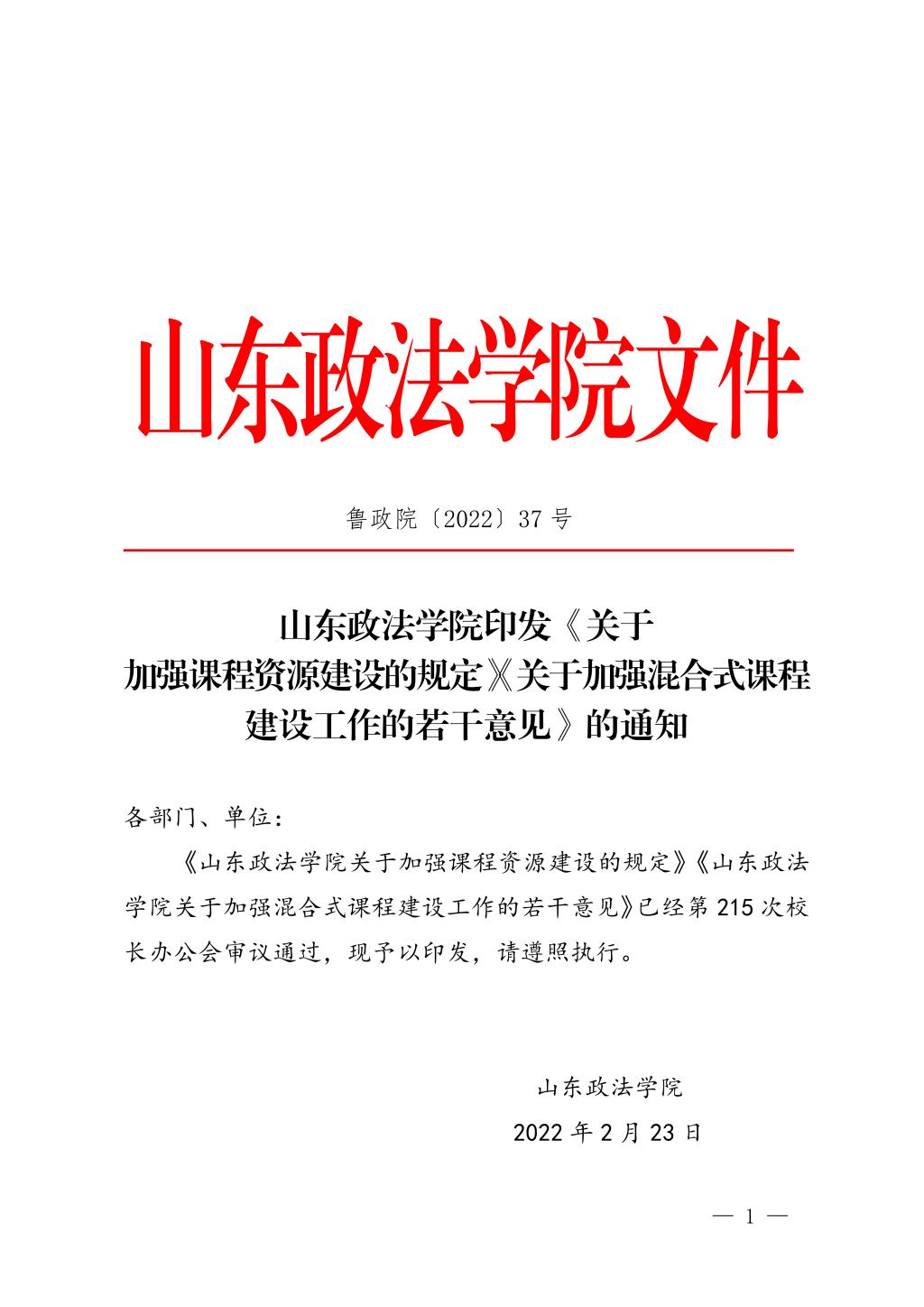 印发《关于加强课程资源建设的规定》《关于加强混合式课程建设工作的若干意见》的通知