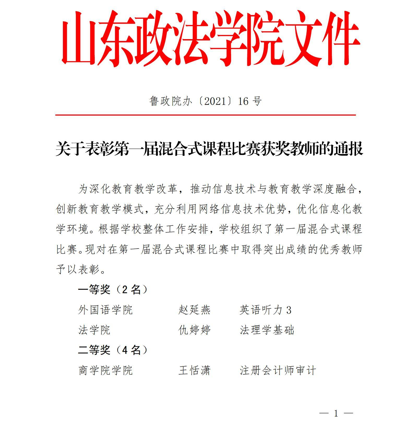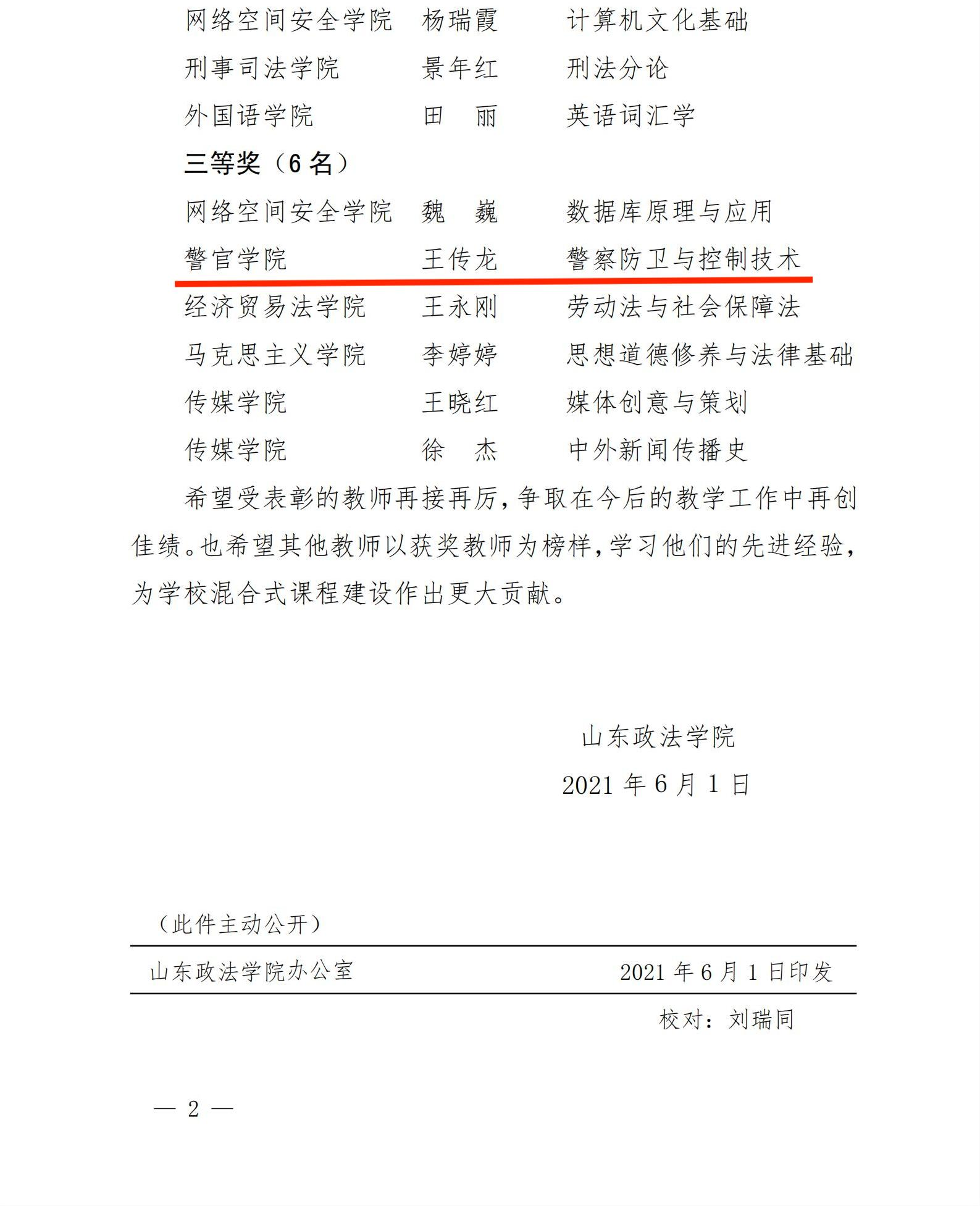 公司王传龙老师荣获学校第一届混合式课程大赛三等奖