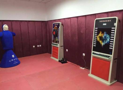 功能说明:提供一个安全可控的范围,用消耗体力、运动击打、注意力转移的方法,将心中不良情绪宣泄出来。有助于缓解情绪沮丧、消极抵触、自杀自残,或严重暴力倾向问题。同时,在这个场所能够让员工学会如何分散服刑人员的情绪沮丧及消极面,让服刑人员彻底释放内心压力,从而实现心理的平衡调节。