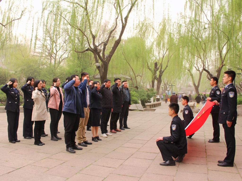 在美铭广场,全体党员紧握右拳,重温入党誓词,坚定铿锵的誓词强烈震撼着每一位党员,一字一句,体现了党员对中国共产党的无限忠诚。