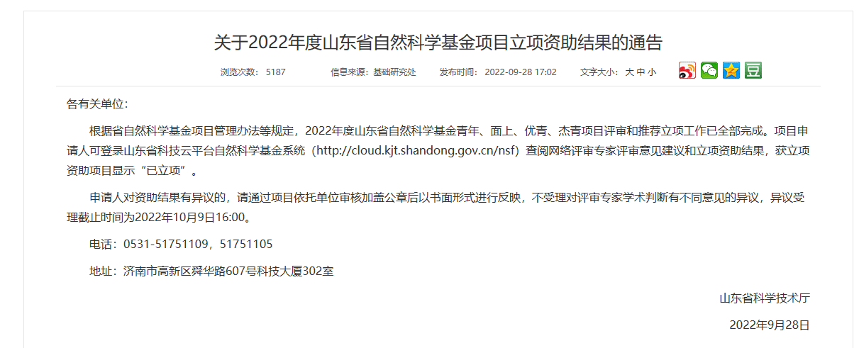 近日,山东省科学技术厅发布了《关于2022年度山东省自然科学基金项目立项资助结果的通告》,公司彭俊磊老师的《基于大数据的监狱安全风险评估与社会治理智能应用》项目以及赵源老师的《情绪体验对聚合思维的影响及其神经机制》项目成功获得立项资助。