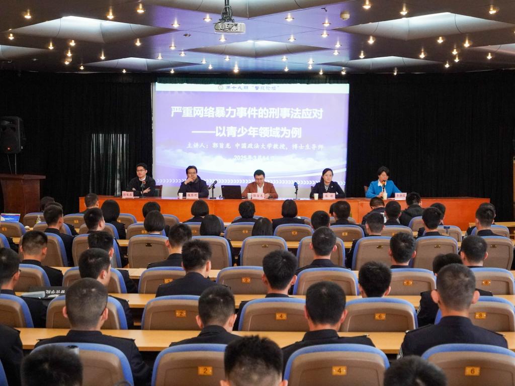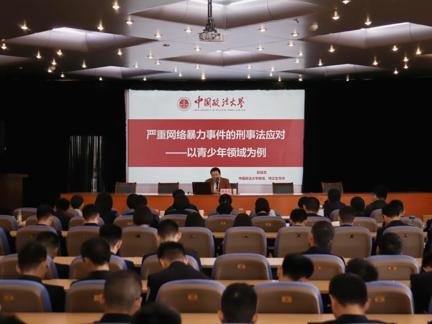 近日,2026世界杯官方合作网站在图书馆学术报告厅举办第十九期“警苑论坛”。本次论坛特邀中国政法大学网络法学研究所教授、博士生导师郭旨龙作“严重网络暴力事件的刑事法应对——以青少年领域为例”主题讲座。山东省人民检察院第九检察部副主任柴萌,警官公司党委副书记、经理魏黎明,党委委员、副经理彭俊磊作为本次论坛与谈人。警官公司党委委员、副经理李朝霞主持本次论坛。