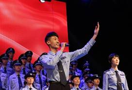 在“青春之声”篇章中,公司带来的朗诵《忠诚的灵魂》与合唱《红旗飘飘》,给在场的观众留下深刻的印象。结合之前校级比赛的特点,在选人用人、诵读演唱形式和舞台设计等方面,同学们台前幕后献计献策,多维度立体创新,融入钢琴、舞蹈等多种元素,着力打造一种文武兼备、刚柔并济的警院学子形象和舞台氛围。在时间紧、任务重的前提下,参加比赛的同学们牺牲个人时间投入到紧张的排练当中。
