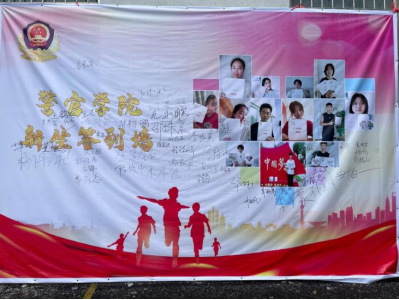 新生们在签名墙上留下了自己的姓名。