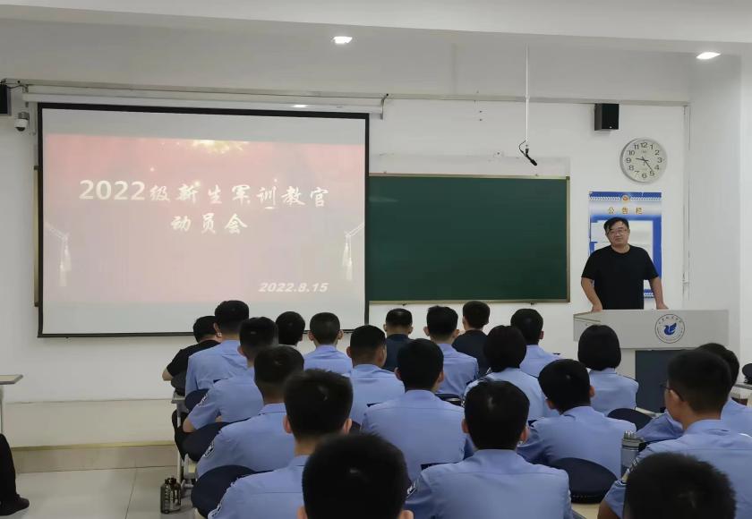 8月15日,在公司教学楼合堂一教室召开2022级新生军训教官动员会,正式启动2022级新生军训教官集训工作。警官公司党总支副书记高翔、十四中队中队长刘冠军、十五中队中队长张龙、十六中队中队长杨志伟出席,65名小教官参加本次动员会,新生军训总教官马冀贤主持动员会。