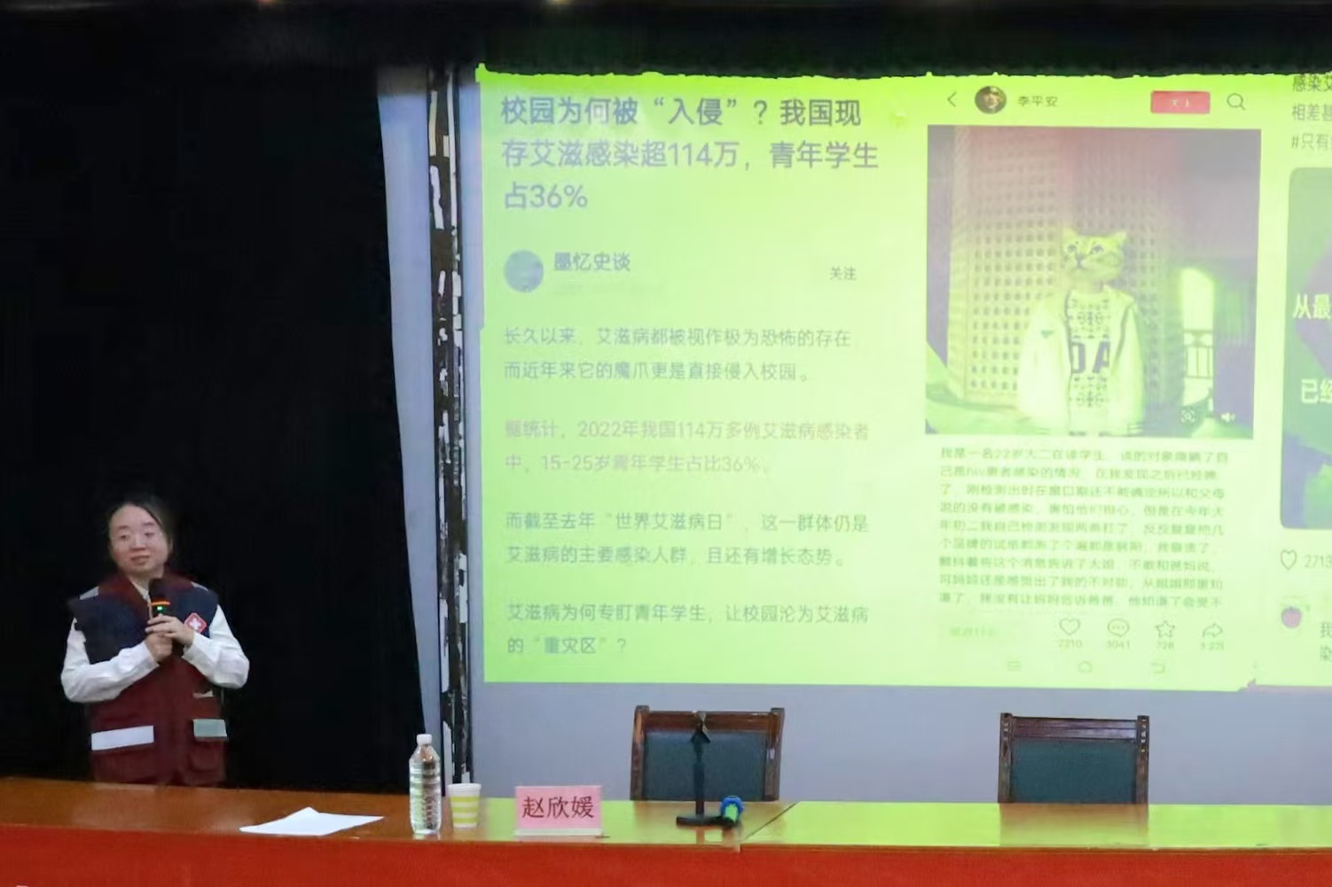 历下区疾病预防控制中心性病与艾滋病防治部主管医师赵欣媛为同学们讲解了艾滋病的主要传播途径、检测方式及预防措施,引导同学们正确认识艾滋病,以积极健康的生活方式积极预防艾滋病。