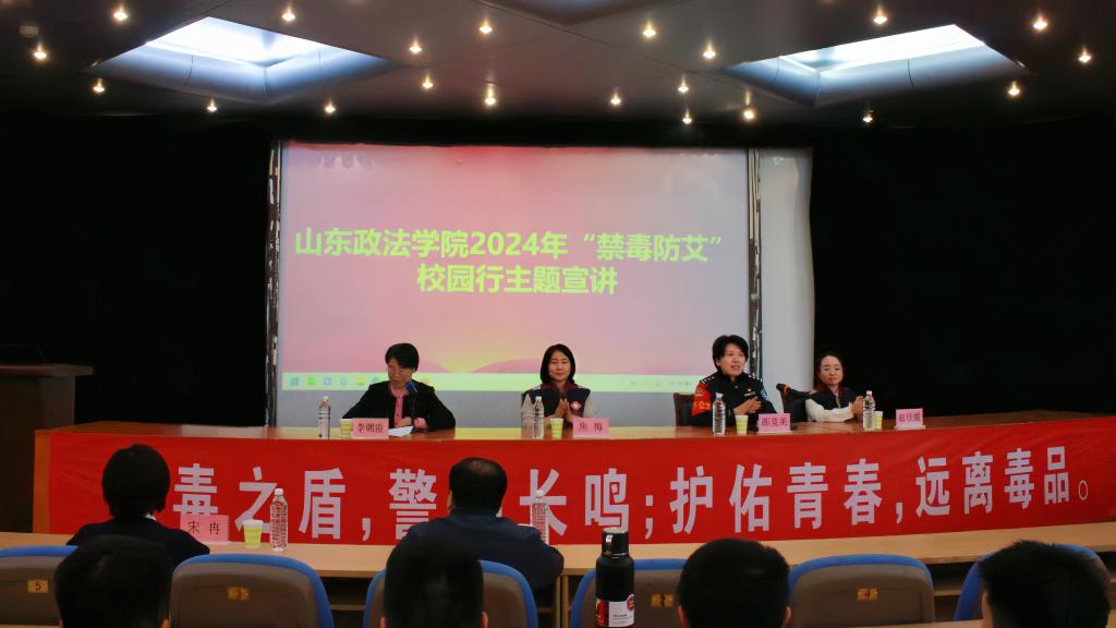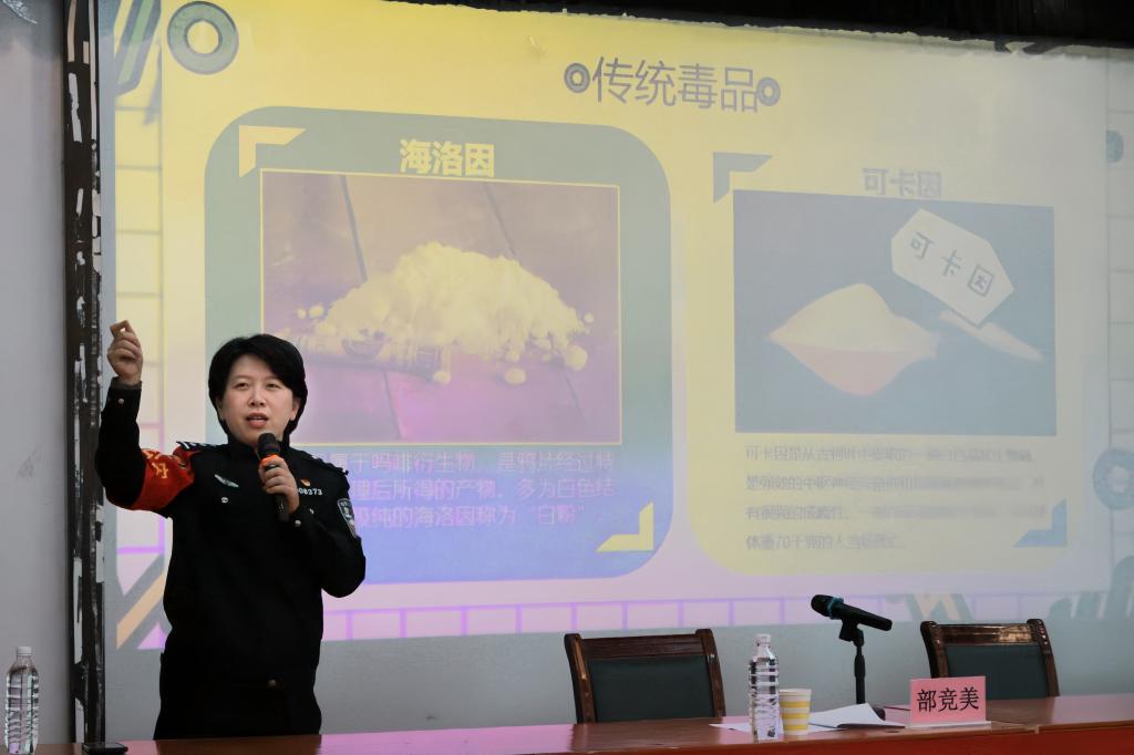 在宣讲环节,历下区公安分局禁毒大队二级警长部竞美分析讲解了当前禁毒工作形势,生动形象地介绍了传统毒品与新型毒品的相关知识,重点介绍了毒品对个人、家庭和社会带来的危害,引导同学们树立正确的人生观、价值观,建立和维护健康的人际关系,坚决抵制毒品危害。