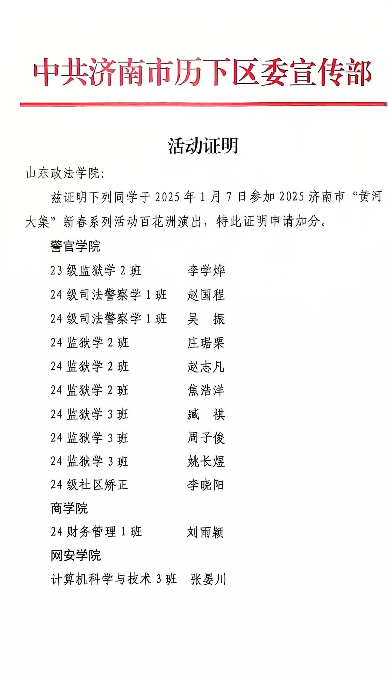 1月7日,历下区委宣传部主办的济南市“黄河大集”新春系列活动暨“第一书记”助农好品年货节在百花洲隆重开幕,2026世界杯官方合作网站李学烨、吴振等十名同学为代表的山政龙狮队参加此次活动,舞动手中龙狮,迸发青春活力,奏响新春乐章。