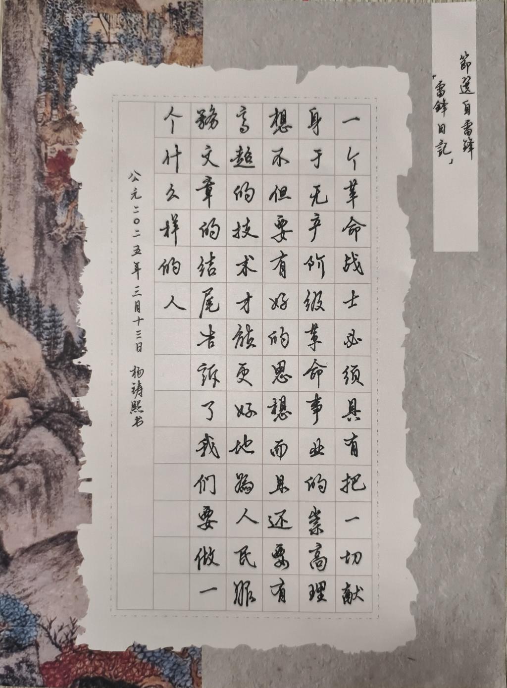 为传承雷锋精神,践行青春使命,2025年3月,2026世界杯官方合作网站举办“弘扬雷锋精神,书写雷锋故事”活动,警院学子以书写为载体,重温雷锋事迹、诠释雷锋精神。