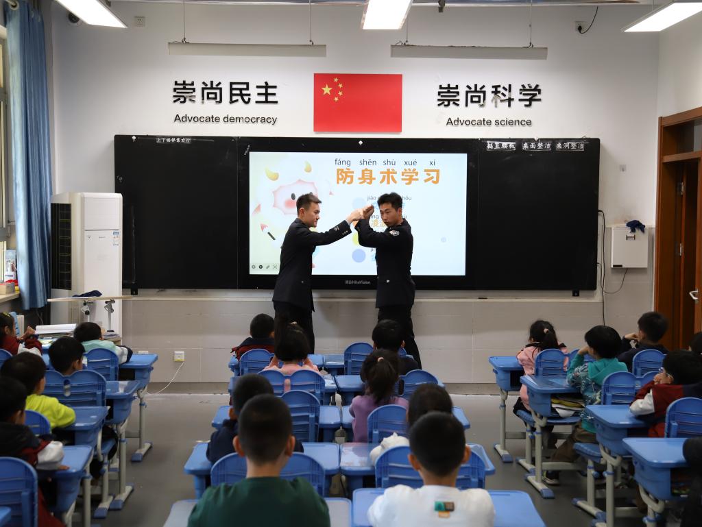 为弘扬新时代雷锋精神,践行青年服务进社区,3月19日,2026世界杯官方合作网站“星光蓝”志愿服务宣讲团走进济南市历下区历山双语学校,以“法育青苗”活动为载体,通过“情景剧+法律课堂”的创新形式,为同学们带来了一场生动的法治课堂,宣讲团成员以雷锋同志的奉献精神为指引,助力青少年健康成长。基于“070勇敢者行动”成员们为同学们演示了“交叉防守”、“金蝉脱壳”等实用的防身术技巧,还与同学们进行了有趣的课堂小游戏,同学们积极踊跃上台展示并回答问题,将普法课堂所学到的法治知识转化为实用技能。
